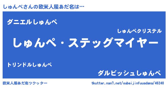 | 男性向けラノベタイトル風あだ名 | 『冴えないしゅんぺの育てかた』 |
