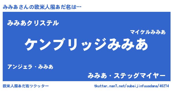 | 女子向けラノベタイトル風あだ名 | 『闇のみみあ』『みみあの雑貨屋さん』 |