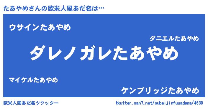 ファンタジー風あだ名 | 『ヴァルタアーナ』『ファントムタアス』 |