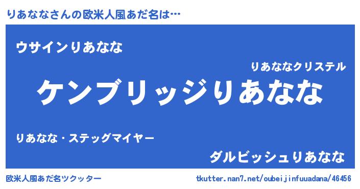 | 男性向けラノベタイトル風あだ名 | 『Re:りあななから始める異世界生活』 |