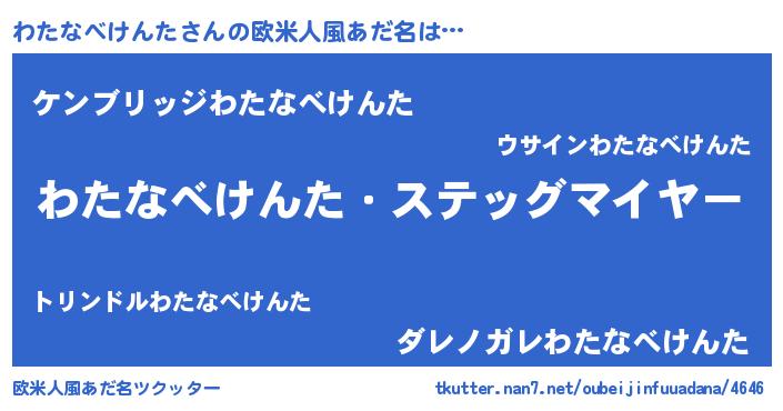 | 男性向けラノベタイトル風あだ名 | 『冴えないわたなべけんたの育てかた』 |