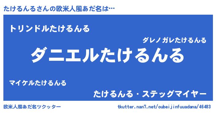 | 男性向けラノベタイトル風あだ名 | 『おまえをオタクにしてやるから、俺をたけるんるにしてくれ! 』 |