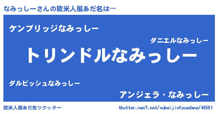 | 男性向けラノベタイトル風あだ名 | 『転生したらなみっしーだった件』 |