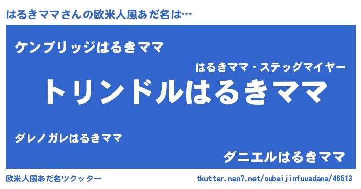 | 男性向けラノベタイトル風あだ名 | 『ハルキママスレイヤー』 |