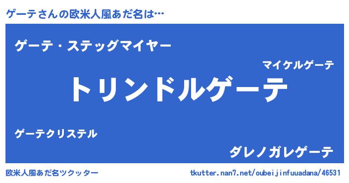 | 男性向けラノベタイトル風あだ名 | 『ゲーテスレイヤー』 |