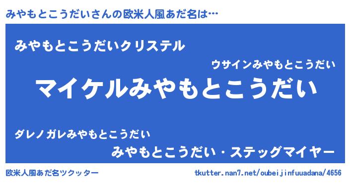 | 男性向けラノベタイトル風あだ名 | 『みやもとこうだいの憂鬱』 |