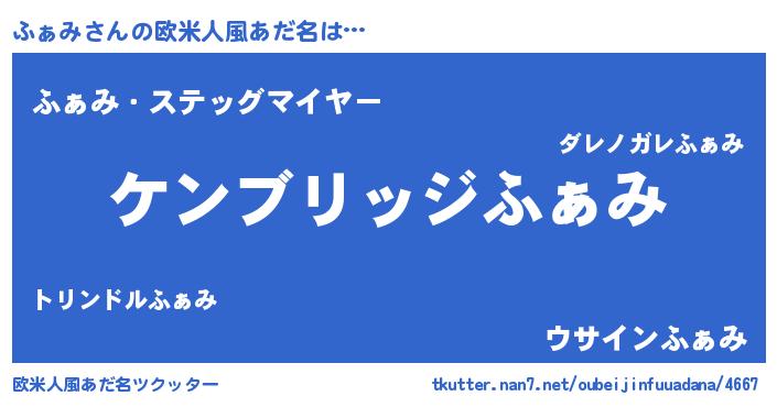 | 男性向けラノベタイトル風あだ名 | 『魔法科高校のふぁみ』 |