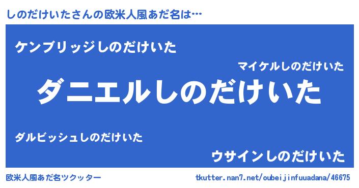 | 男性向けラノベタイトル風あだ名 | 『ノーゲーム・ノーシノダケイタ』 |