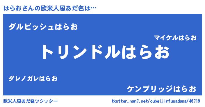 | 男性向けラノベタイトル風あだ名 | 『転生したらはらおだった件』 |