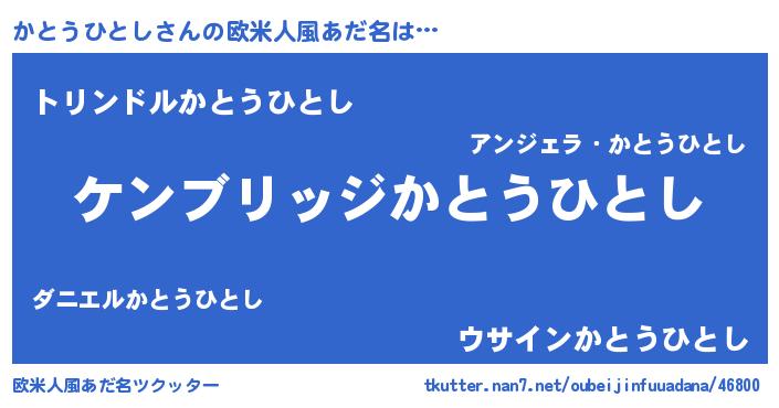| 男性向けラノベタイトル風あだ名 | 『Re:かとうひとしから始める異世界生活』 |