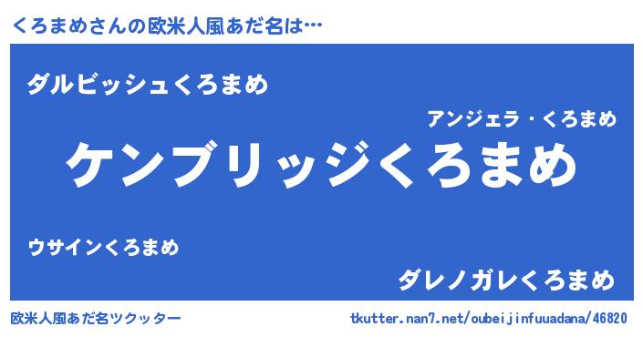 | 男性向けラノベタイトル風あだ名 | 『Re:くろまめから始める異世界生活』 |