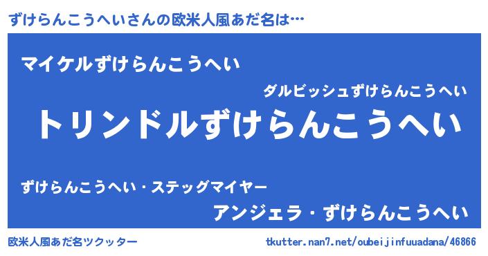 | ヘコむあだ名 | 『ずけもー』『ずけらんこうへい(笑)』 |