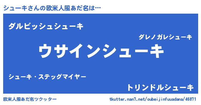 | 男性向けラノベタイトル風あだ名 | 『シューキの嫁は女の子じゃないと思った?』 |