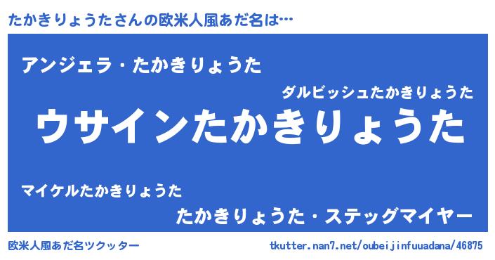 | 男性向けラノベタイトル風あだ名 | 『たかきりょうたの嫁は女の子じゃないと思った?』 |