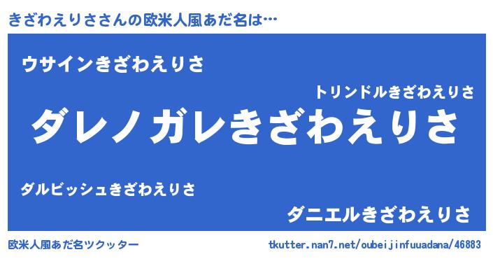 | 女子向けラノベタイトル風あだ名 | 『乙女ゲームの破滅フラグしかない悪役きざわえりさに転生してしまった…』 |