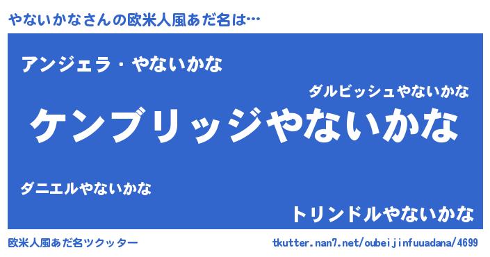 | 女子向けラノベタイトル風あだ名 | 『やないかななんてお断りですっ。』 |