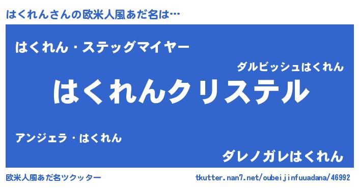 | ヒーロー風カッコイイあだ名 | 『ウルトラはくれんマン』『仮面ハクダー』 |