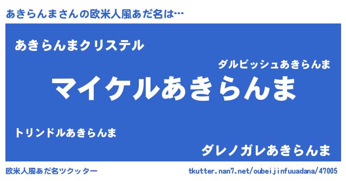 | 男性向けラノベタイトル風あだ名 | 『アキランマアートオンライン』 |