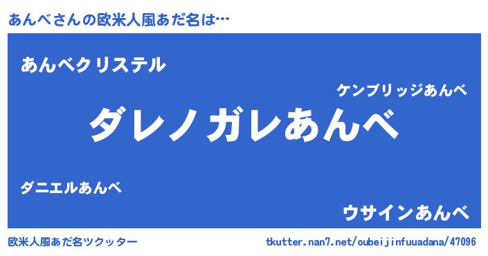 | 男性向けラノベタイトル風あだ名 | 『この素晴らしい世界にあんべを!』 |