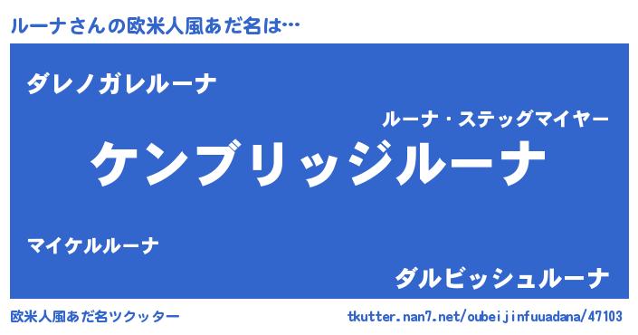 | 男性向けラノベタイトル風あだ名 | 『Re:ルーナから始める異世界生活』 |