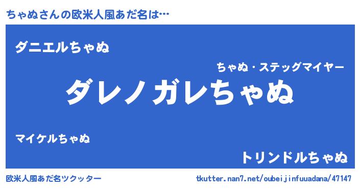 | 男性向けラノベタイトル風あだ名 | 『この素晴らしい世界にちゃぬを!』 |