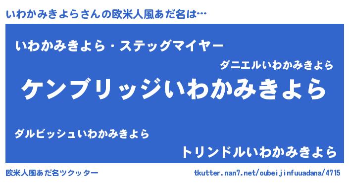 | 男性向けラノベタイトル風あだ名 | 『Re:いわかみきよらから始める異世界生活』 |