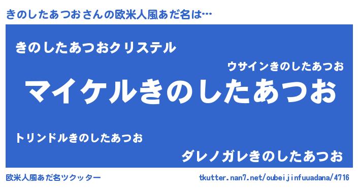 | 男性向けラノベタイトル風あだ名 | 『キノシタアツオアートオンライン』 |