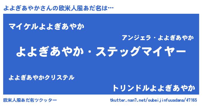 | 恥ずかしいあだ名 | 『プリティーよよぎあやか』『よよっちょ』 |