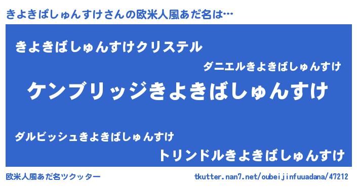 | 男性向けラノベタイトル風あだ名 | 『Re:きよきばしゅんすけから始める異世界生活』 |
