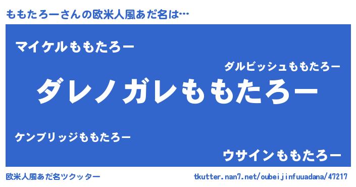 | 意味不明あだ名 | 『住所不定無職ももたろー(7歳)』 |