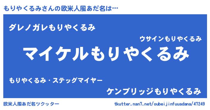 | 男性向けラノベタイトル風あだ名 | 『モリヤクルミアートオンライン』 |