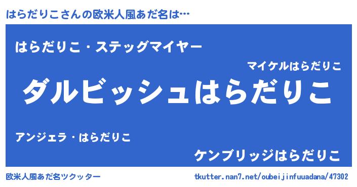| 男性向けラノベタイトル風あだ名 | 『はらだりこという概念が存在しない退屈な世界 』 |