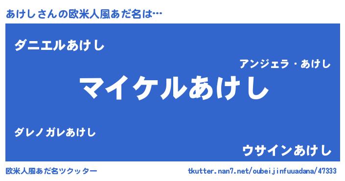 | 男性向けラノベタイトル風あだ名 | 『あけしの憂鬱』『はたらくあけしさま!』 |