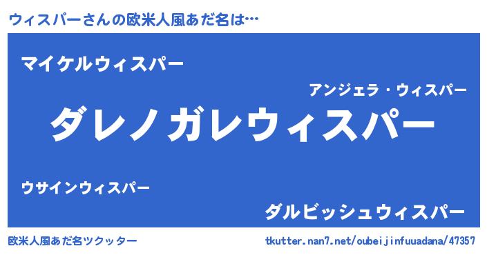 | 男性向けラノベタイトル風あだ名 | 『この素晴らしい世界にウィスパーを!』 |