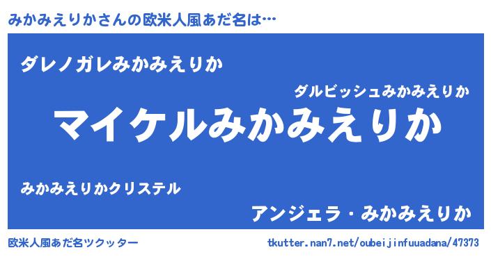 | 女子向けラノベタイトル風あだ名 | 『(仮)みかみえりかのやんごとなき事情』 |