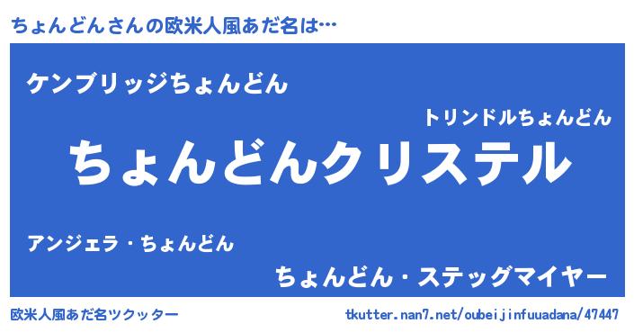 | 女子向けラノベタイトル風あだ名 | 『ちょんどんの雑貨屋さん』 |