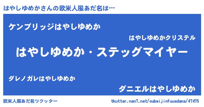 | 意味不明あだ名 | 『自称はやしゆめか』 |