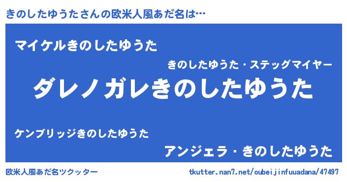 | 男性向けラノベタイトル風あだ名 | 『魔弾の王ときのしたゆうた』 |