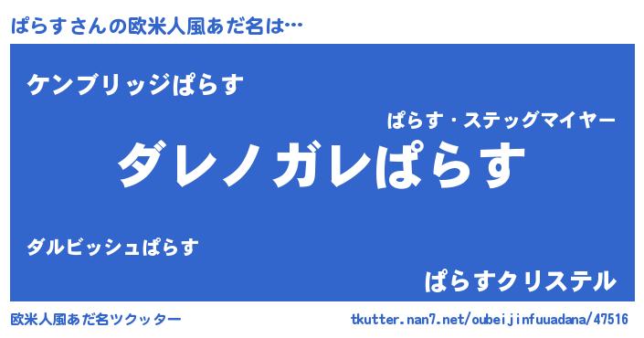 | 意味不明あだ名 | 『住所不定無職ぱらす(71歳)』『自称ぱらす』 |