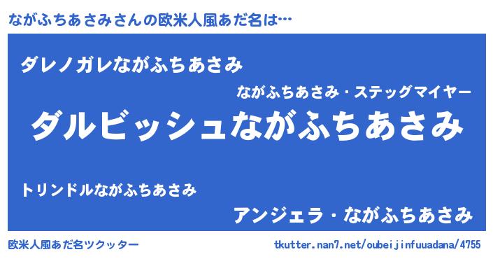 女子向けラノベタイトル風あだ名 | 『異世界で失敗しない100のながふちあさみ』 |