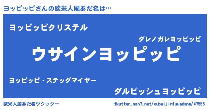 | 女子向けラノベタイトル風あだ名 | 『ヨッピッピは平凡を望む』 |