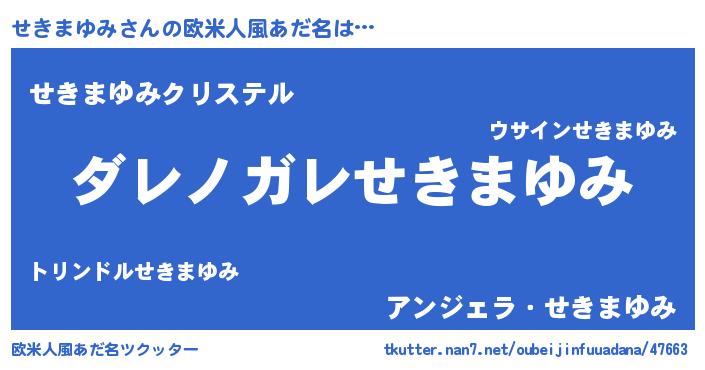 | 男性向けラノベタイトル風あだ名 | 『この素晴らしい世界にせきまゆみを!』 |