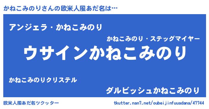 | 男性向けラノベタイトル風あだ名 | 『かねこみのりの嫁は女の子じゃないと思った?』 |