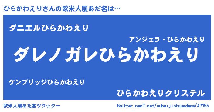 | 男性向けラノベタイトル風あだ名 | 『魔弾の王とひらかわえり』 |