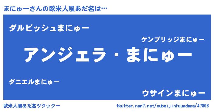 | ヘコむあだ名 | 『まにゅー(震え声)』『まにお』 |
