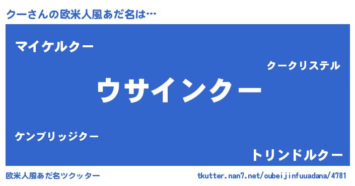 | 女子向けラノベタイトル風あだ名 | 『クーの卵を拾いまして』 |