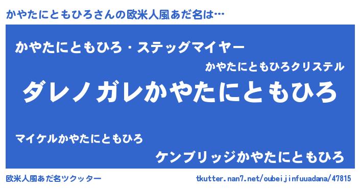 | 意味不明あだ名 | 『住所不定無職かやたにともひろ(74歳)』 |