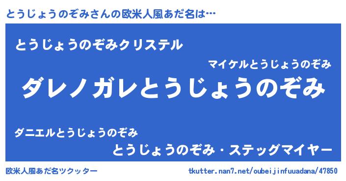 | ヒーロー風カッコイイあだ名 | 『仮面トウダー』『ネオトウジョウノゾミ』 |