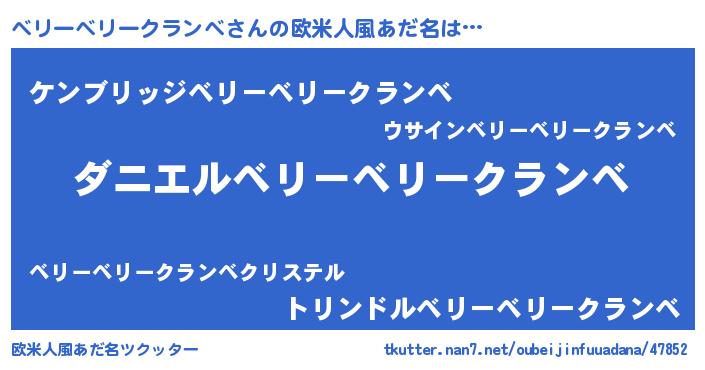 | 女子向けラノベタイトル風あだ名 | 『ベリーベリークランベ夫妻のなれそめ』 |