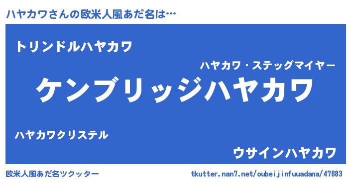 | 男性向けラノベタイトル風あだ名 | 『魔法科高校のハヤカワ』 |